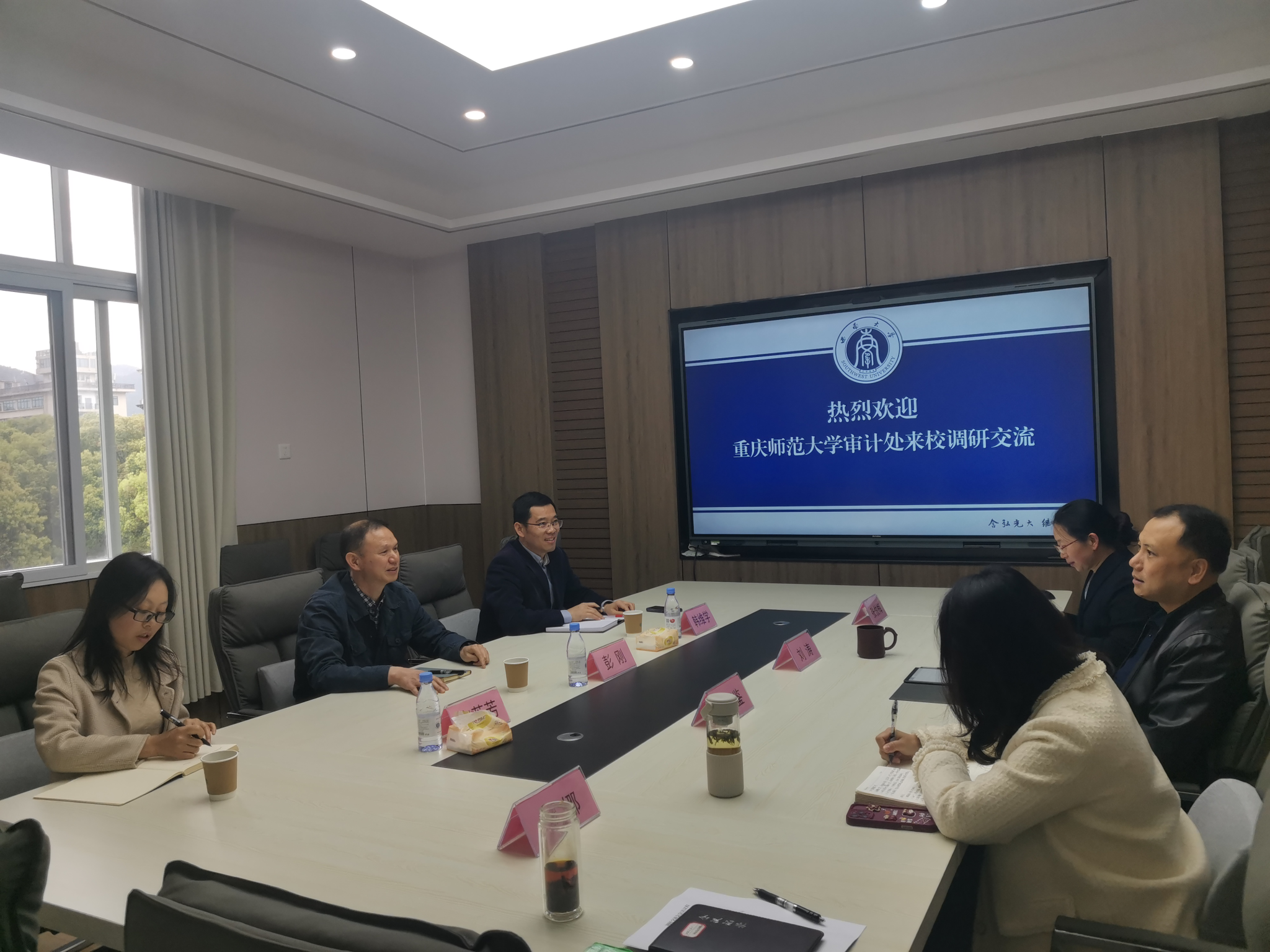 2026年3月12日,重庆师范大学审计处处长彭刚、副处长韩维学以及综合科副科长宋芳芳到我校审计处进行调研交流。我校审计处处长刘涛、副处长王玥鉴、副处长张悦梅参加会议。